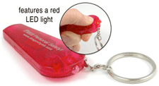 This key chain features a whistle and a red LED light. It's a perfect tool for safety or just to grab attention!